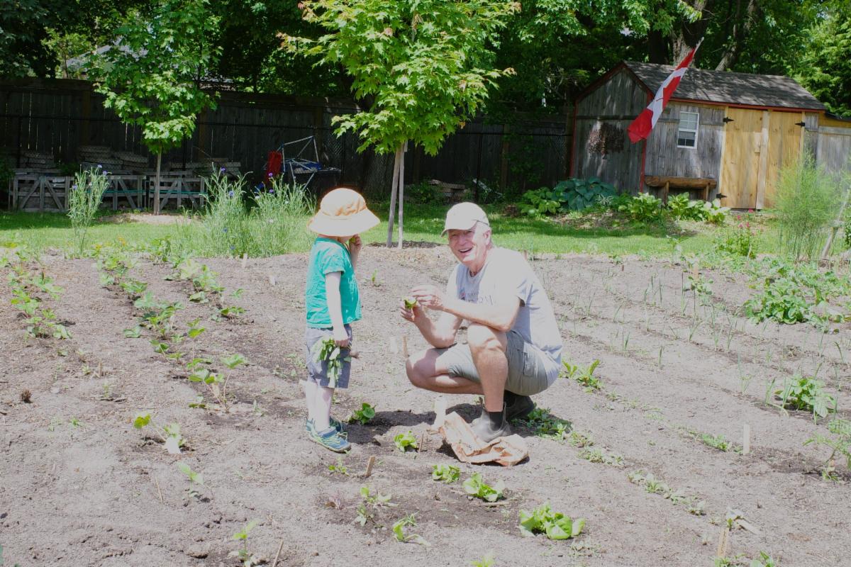 Ben’s son Peter is a wealth of knowledge and information while in the garden. He likes to follow us around when we are hand watering, asking questions (lots of questions!) and exclaiming over everything that he sees. “Grandpa, my Dad has sunflowers. Some of them are bigger than you. LOOK! Here is one. And LOOK here is another that is taller than you Grandpa!”