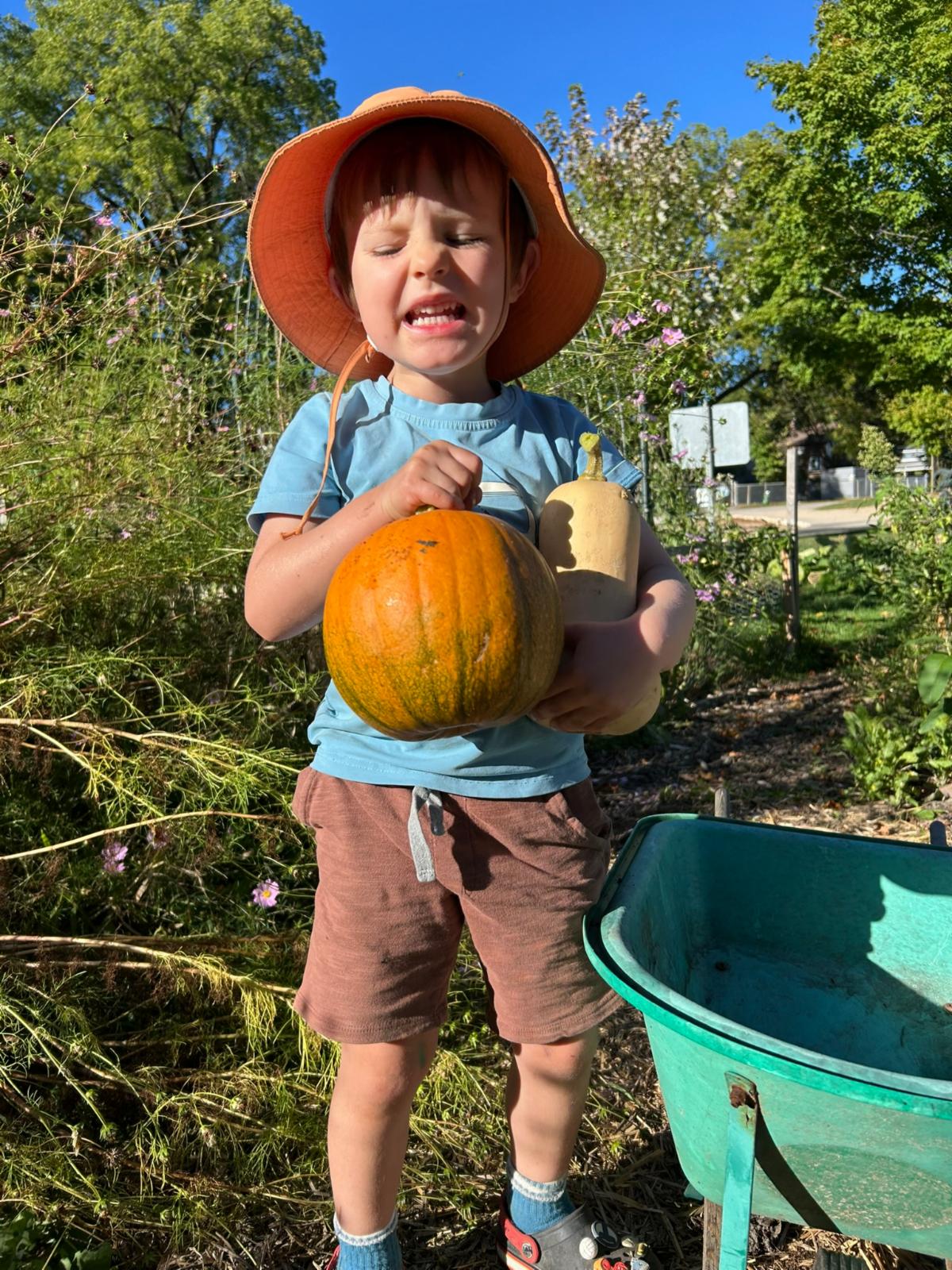 Perhaps the journey of seed sowing, nurturing, flowers, pollinators and eventually a pumpkin was, in his mind, well worth consuming his whole garden plot. Kids can learn a lot from this experience.