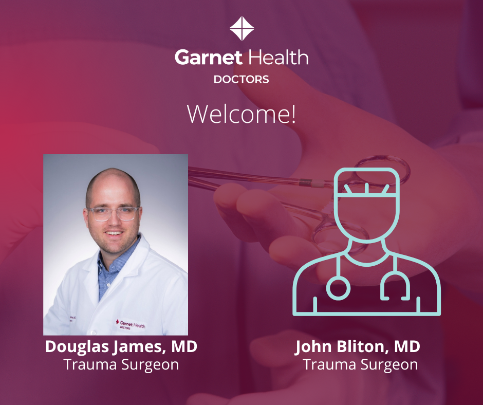 Garnet Health Doctors is excited to welcome Trauma Surgeon John Bliton, MD, and to welcome back Trauma Surgeon Douglas James, MD!