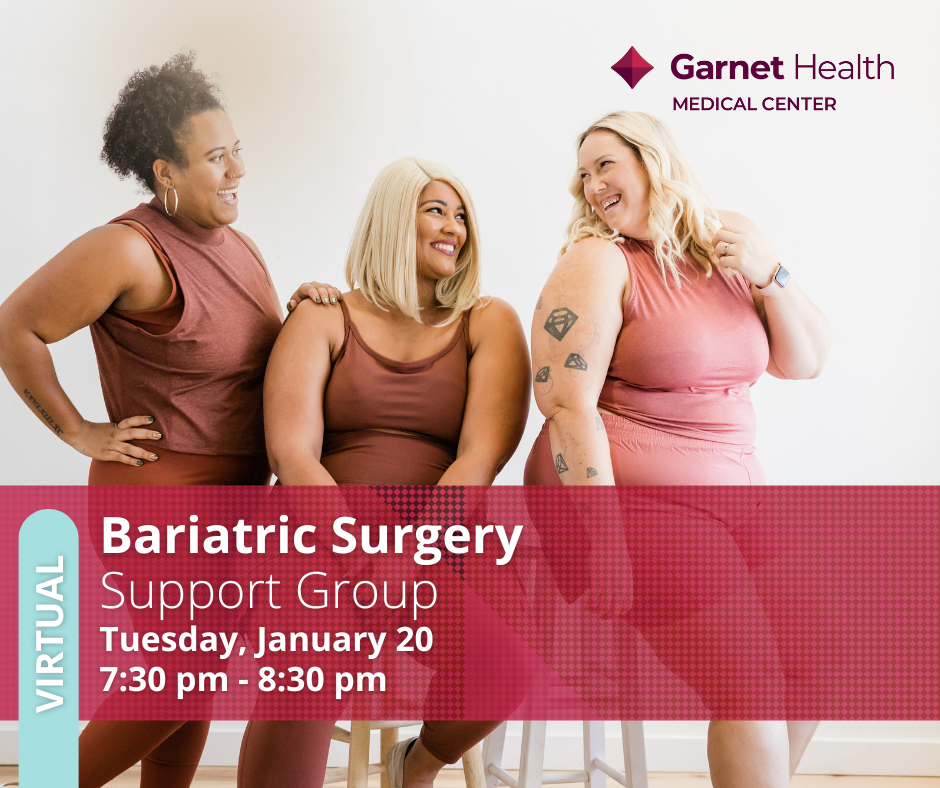 The Garnet Health Bariatric Surgery Support Group is for both pre- and post-op bariatric patients and is open to the general public. Our presenters consist of plastic surgeons, certified fitness instructors, nutritionists, etc.
