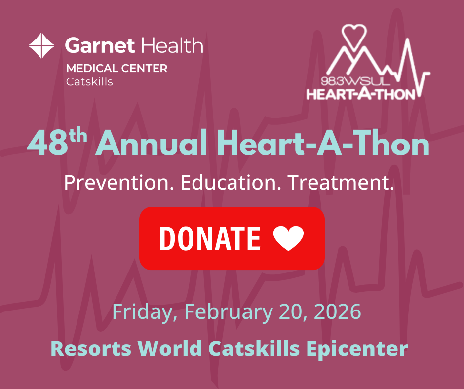 You may also use the "Make a Donation" button and donate to Garnet Health Medical Center – Catskills directly on the Heart-A-Thon Donation Page.