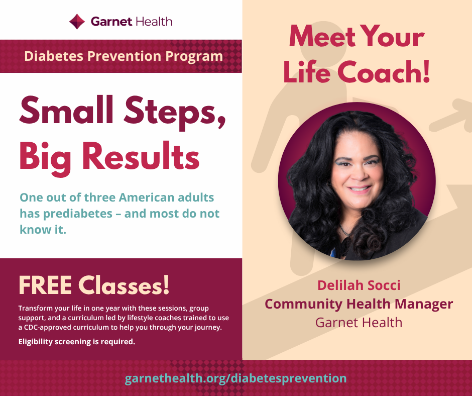 Garnet Health offers a FREE Diabetes Prevention Program. Transform your life in one year with sessions, group support, and a curriculum led by CDC trained lifestyle coaches.