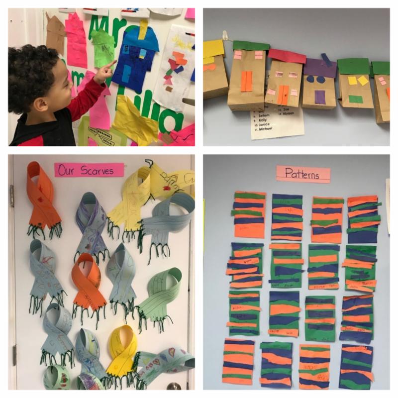 Some activities at Twin Rivers Head Start are represented in the above photo collage. They include a clothes study, where the children created their own scarf using sentence strips, crayons, colored pencils and yarn; and building houses with paper bags and assorted shapes.