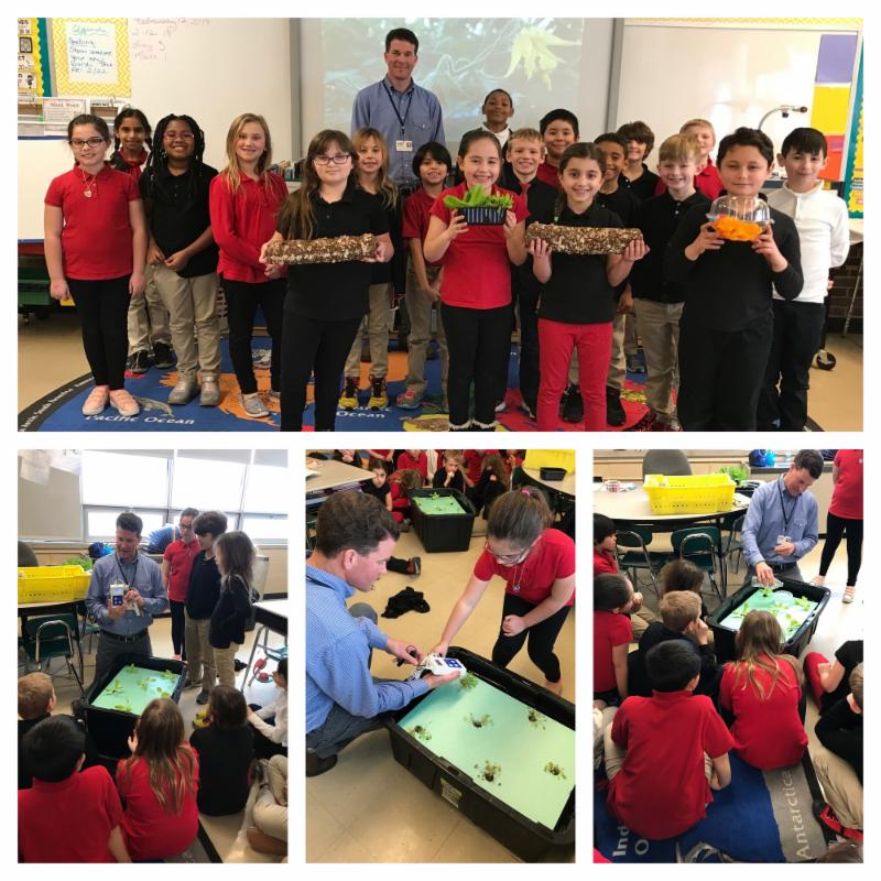 | Marcus Weaver, Gateway's Director of Agriculture and Food Initiatives, visited Rossi Elementary School in Vineland to give a presentation on hydroponic growing. Teacher Amber Egorov, who has visited Gateway's Mill Creek Urban Farm and toured our hydroponic facilities is doing a hydroponic project with her 3rd grade students. |