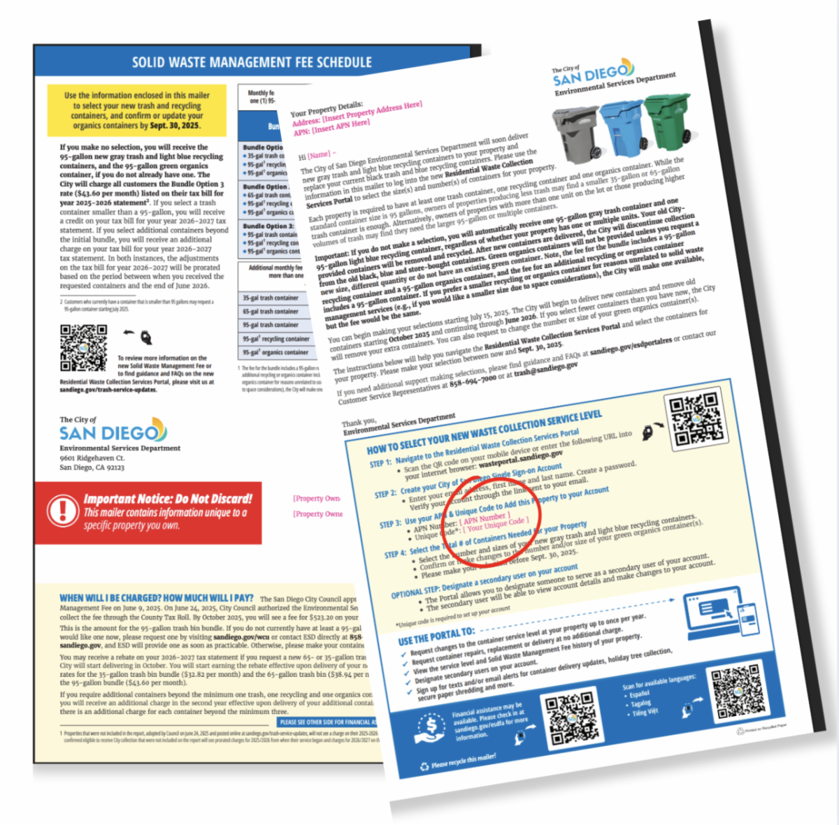 Have you received this letter from the City of San Diego in the mail? Property owners receiving City trash and recycling services are being asked to enroll in a new customer portal by September 30, 2025.
