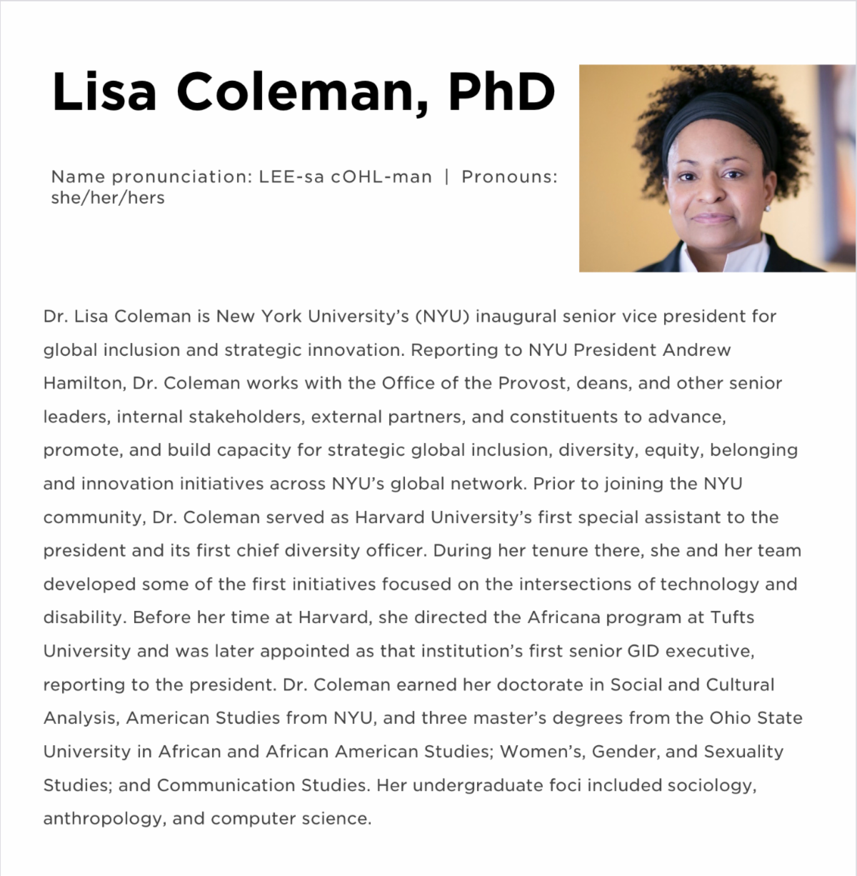 Dr. Lisa Coleman, New York University