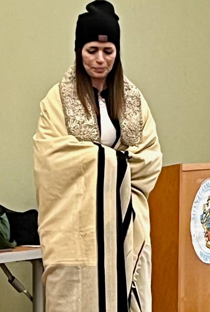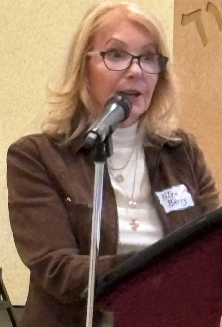 On December 10, 2025, an audience of more than 25 people was enthralled by the stories told by Gen After Speakers' Bureau members Genie Glucksman and Sheri Heller. Genie spoke about her mother Manya and her aunt Genka who were in the Gruenberg slave labor camp together as well as a death march to Bergen-Belsen. Sheri Heller talked about her mother Rita Rubinstein’s treasured tallit, which belonged to Rita’s father, who was killed when she was a child.