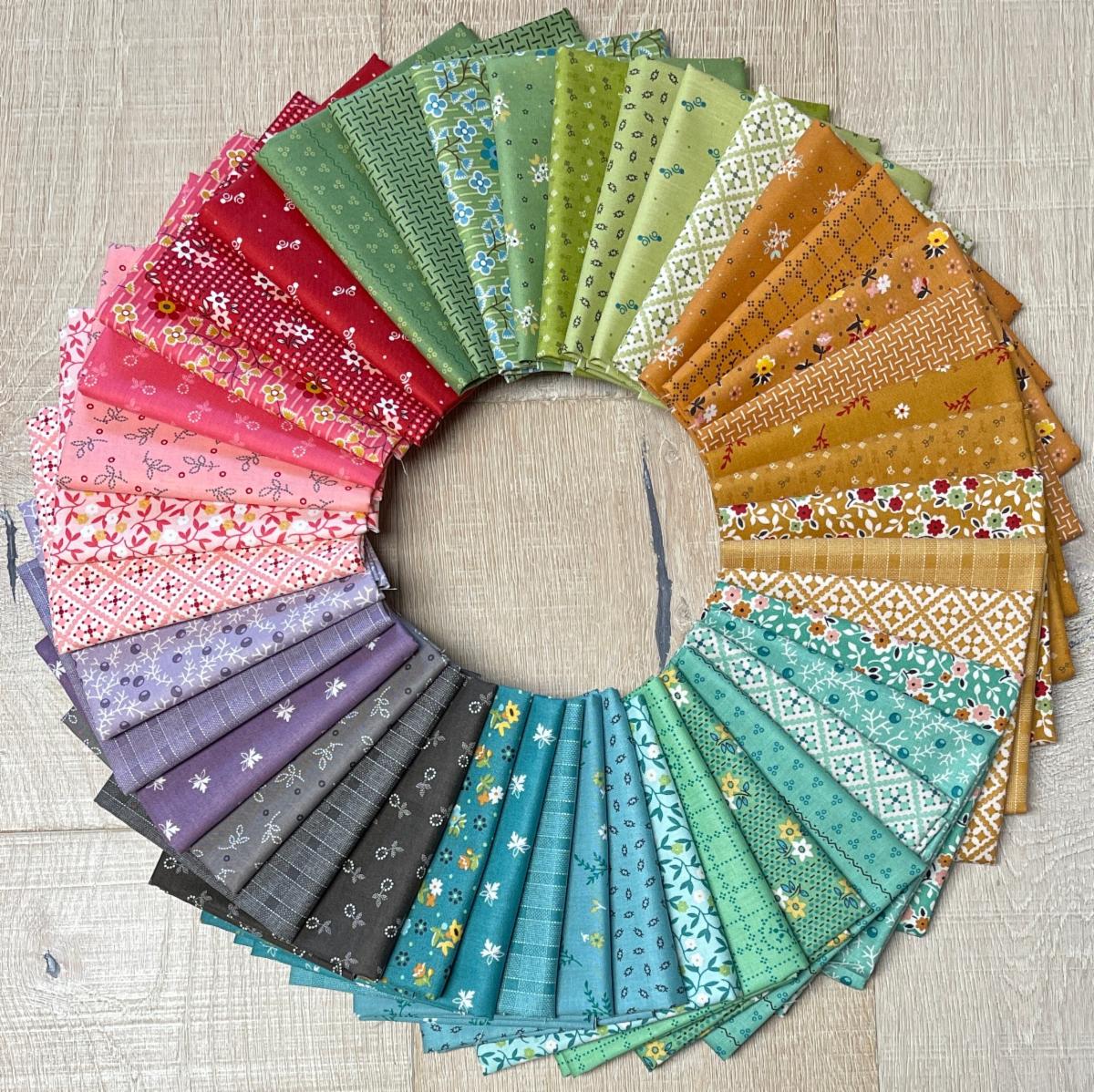 Let your mind wander to a season of calm and gentle times when you create with this beautiful collection by designer Lori Holt for Riley Blake Designs. Gentler Times displays lovely petite florals and other retro inspired patterns. Her classic palette including raindrop, cider, basil, schoolhouse, pebble and even cozy will sweep you away! Whether you've been a long time follower of Lori Holt and a Bee in My Bonnet or you've just discovered her designs and fabrics, this collection is sure to please.