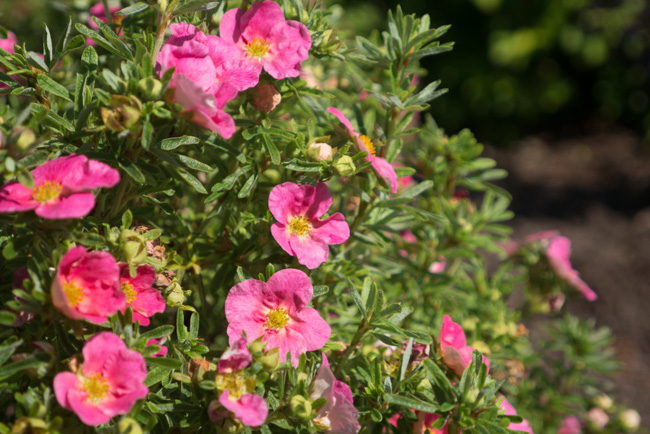 Returning this season are the Bella series Potentilla, offering a tidy growth habit and compact size, with larger flowers with colours that intensify rather than fade. Bella Bellissima has intensely pink blooms from top to bottom and Bella Sol has fiery orange flowers smothering virtually care free shrubs.