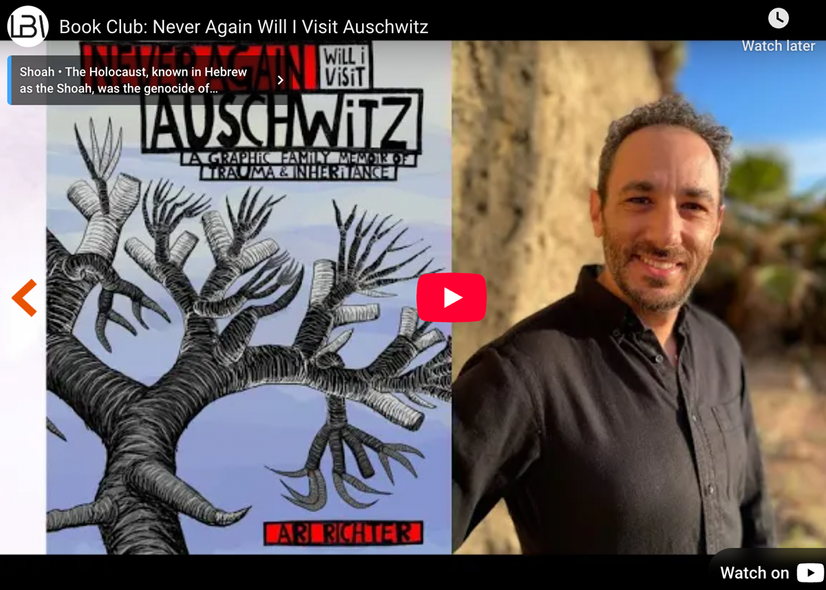 (pictured bottom left in front of photo from when his father liberated Buchenwald death camp)