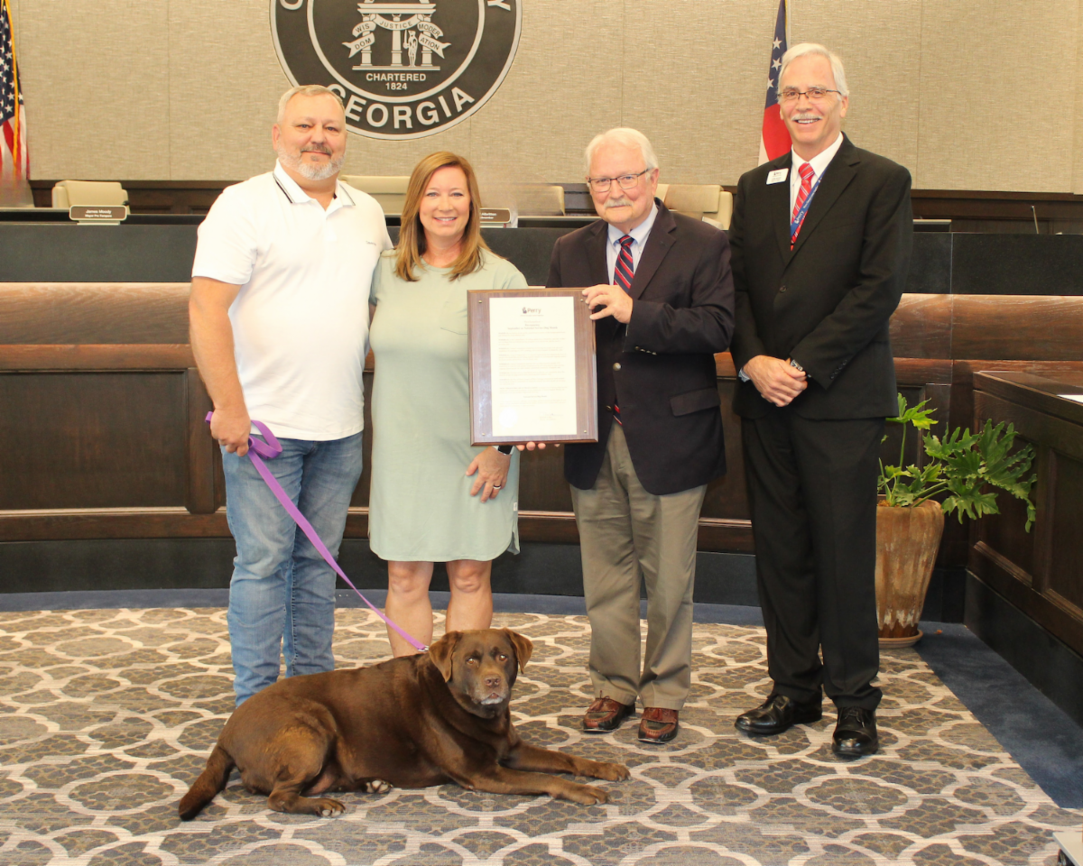 Mayor Walker, Mayor Pro-Tem James Moody, and Perry City Council joined the Shumate family and their late son’s service dog to honor the special bond between people and their service dogs.