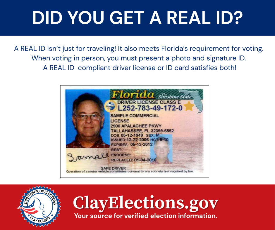 When you renew or replace your driver’s license or FL ID, don’t forget to check the box that says “yes” to updating your voter information, even if you’re not making any other changes. Or if you prefer, you can fill out a voter registration application in person at the Clay County Supervisor of Elections Office or online at RegistertoVoteFlorida.gov