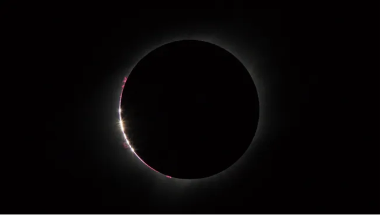 During a total solar eclipse, the moon lines up perfectly to obscure the sun, creating "totality". At the time of totality, the sky will become dark, and the sun’s corona (or outer atmosphere) will be visible. During the 2024 total solar eclipse, nearly everyone in North America will see some part of the eclipse, but only those who live in or travel to the path of totality will experience all stages of this rare event. The difference between a total and partial eclipse is out of this world: if even one percent of the sun is visible during an eclipse, the sun is 10,000 times too bright to observe the most spectacular part - totality!