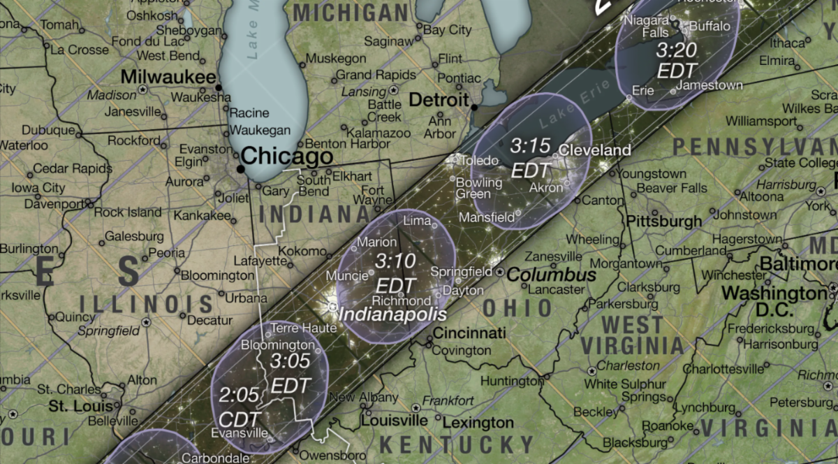 (Photo: Projected path of the total solar eclipse on April 8th!)