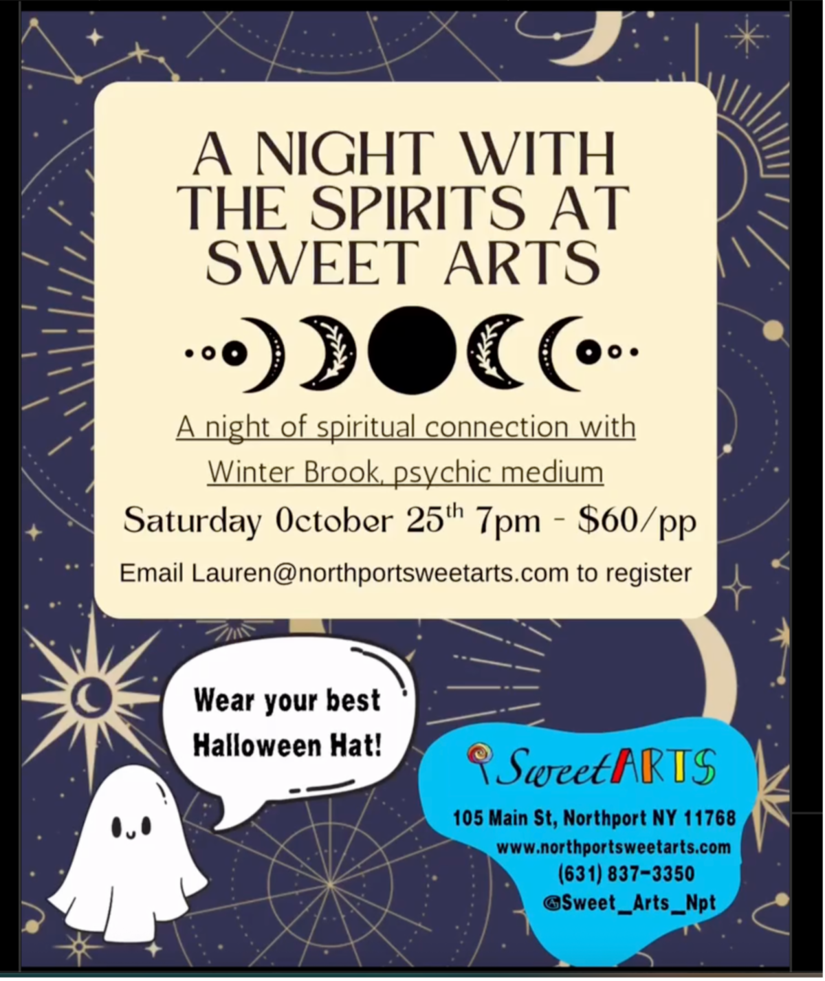 Saturday, October 25, 2025 @ 7pm @ Sweet Arts 105 Main Street, Northport, NY 11768; $60.00 small group reading (limited to 10).