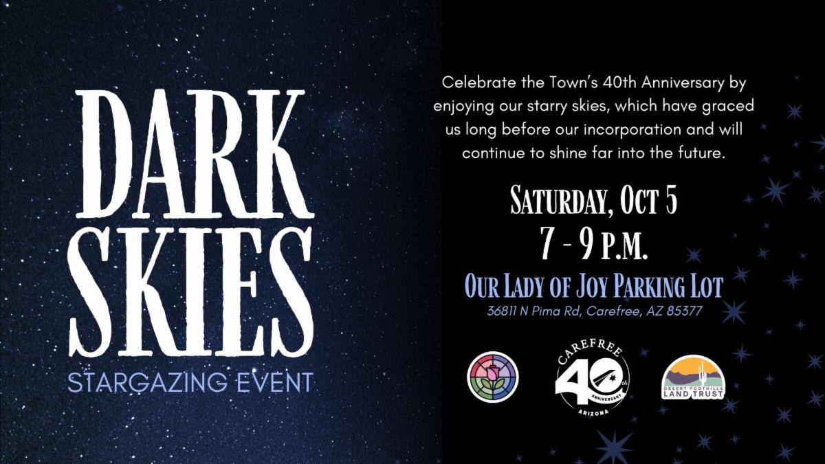Join us on October 5th from 7-9 p.m. at Our Lady of Joy Church parking lot to celebrate our beautiful, starry skies as part of Town of Carefree's 40th Anniversary celebration!