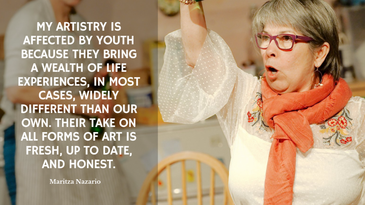 I have spent my adult life working with children and youth as either an Academic or Acting teacher. My artistry is affected by youth because they bring a wealth of life experiences, in most cases widely different than our own. And, their take on all forms of Art is fresh, up to date and honest. When I am working with them, they have a very important part in the creative process. I become the lead of basic artistic knowledge and the guide of their creative process, but they give birth to the creative explosion.