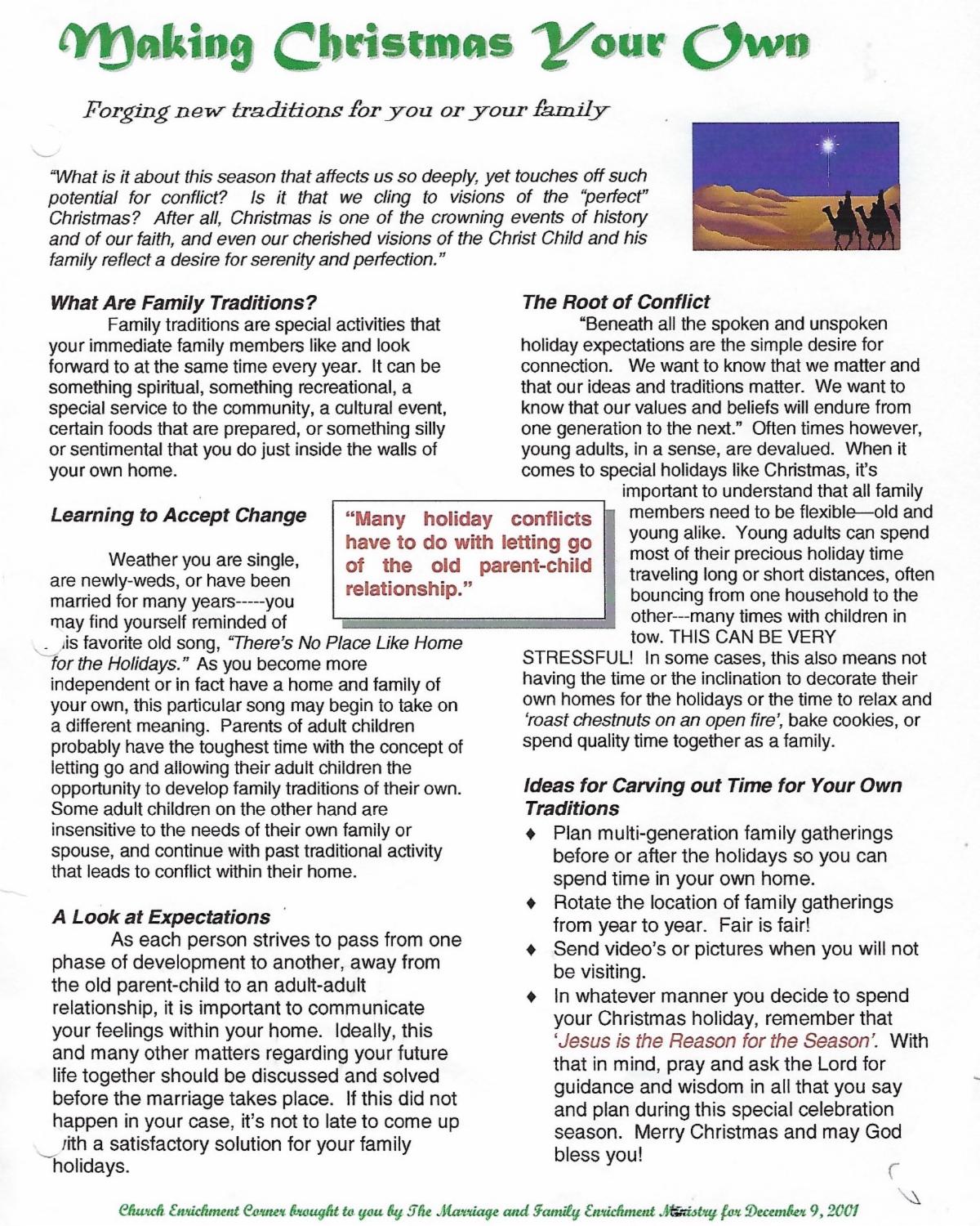 • Organize an outdoor winter picnic—including hot drinks brought in thermoses. Or invite someone or a small group to your home for fellowship and light refreshments.