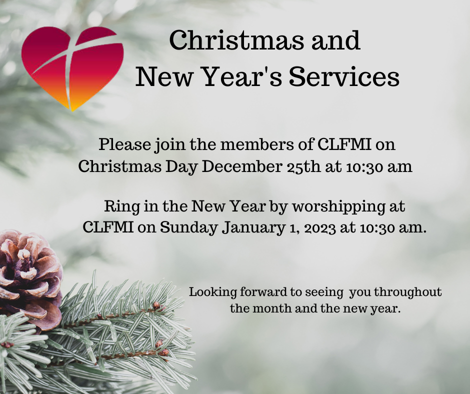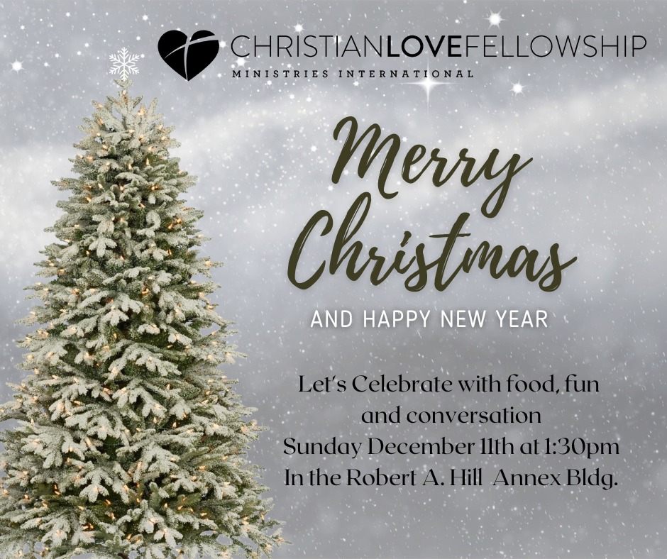 Come celebrate with us on Christmas Day and New Years Day at 10:30 am. at Christian Love Fellowship Ministries International. We are looking forward to seeing you there.