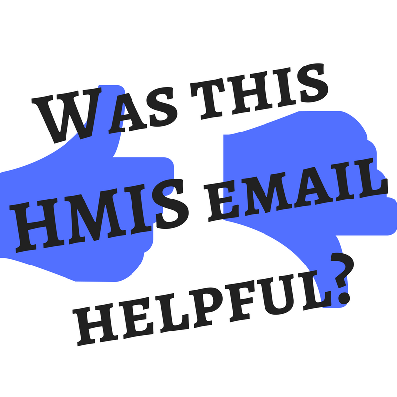 Instead of sending an email directly to HMIS staff, simply send an email to the help email address for your agency. Every agency has one. Please find the help email address for your agency and save it to your contacts:
