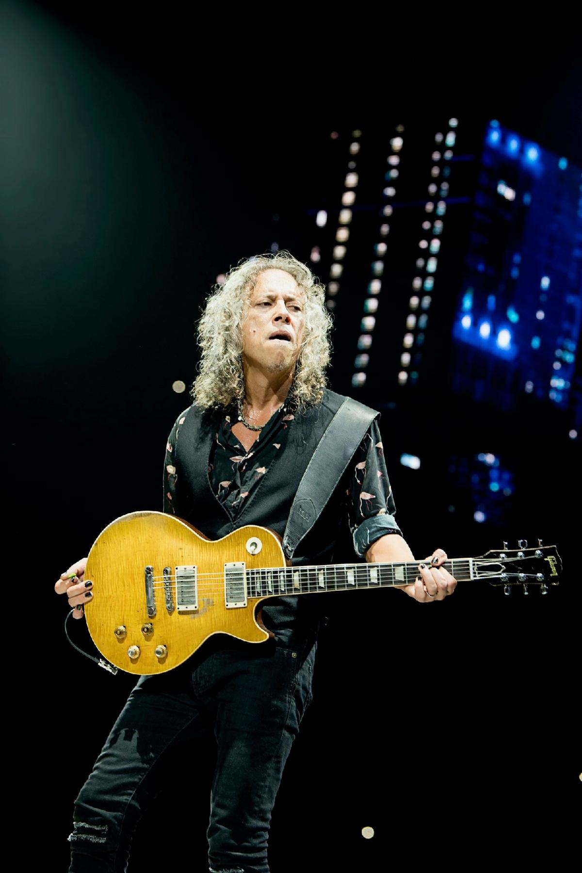 Above Kirk Hammett of Metallica performs with his Gibson ’59 Les Paul Standard known as “Greeny.” Photo credit, all images: Ross Halfin.