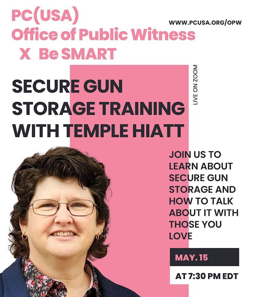 On Thursday, May 15th at 7:30 pm ET, please join the Office of Public Witness for our first webinar training on secure gun storage in conjunction with our newly launched partnership with Be SMART. Firearm-related death has become the leading cause of mortality for children in the US—more than cancer or car accidents. This is partly because of the rise in unintentional child-involved shootings. Simultaneously, many improperly stored firearms are stolen each year and used in violent crimes.