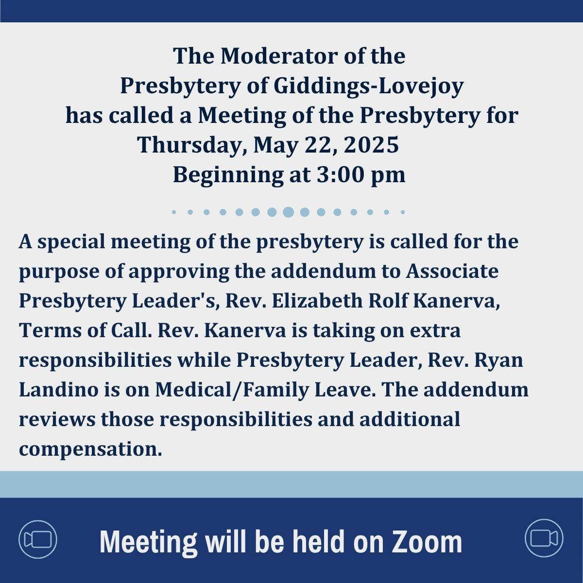 | | | Called Presbytery Gathering - May 22 | |