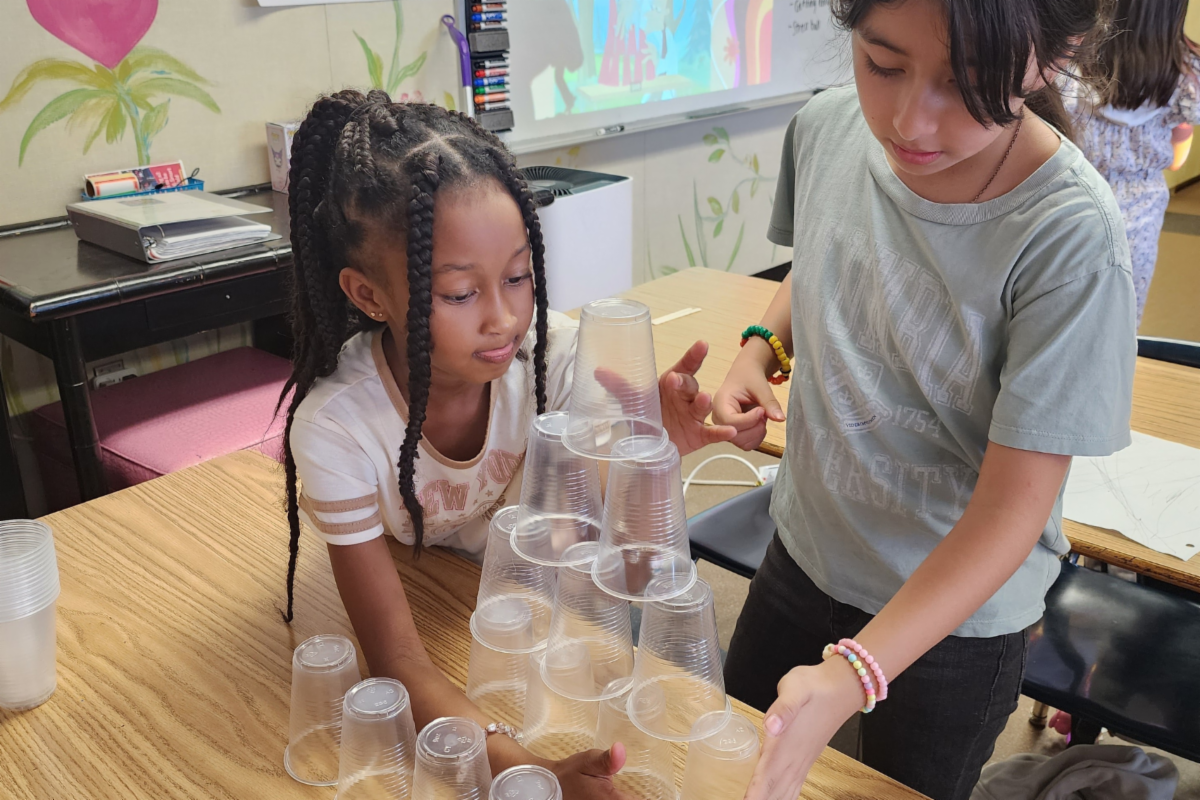 To help girls embrace risk-taking, they were tasked with building a reverse pyramid starting from the top rather than the base without dropping any cups. At first, girls were anxious about taking on a new and difficult task, hesitant about voicing their ideas, and frustrated when their pyramids collapsed. But with each attempt, they improved, gained confidence and even had fun challenging themselves to build even higher.