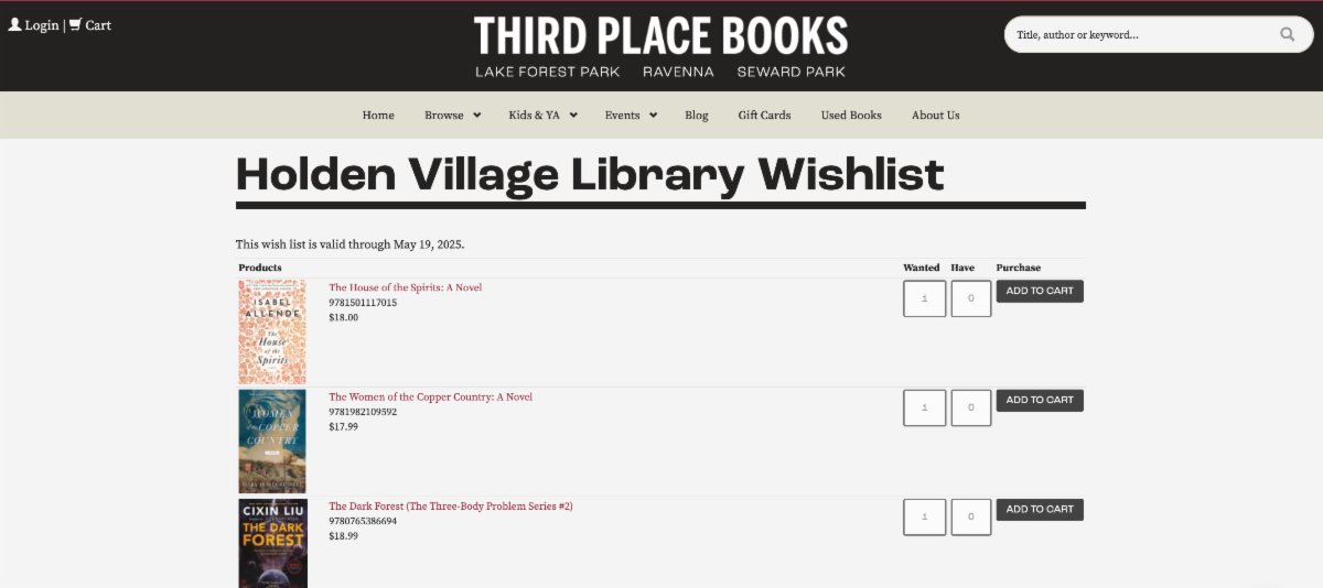Or, check out the Book Wishlist and give a gift of a book to the Holden library! Help villagers cozy up with new books this winter.