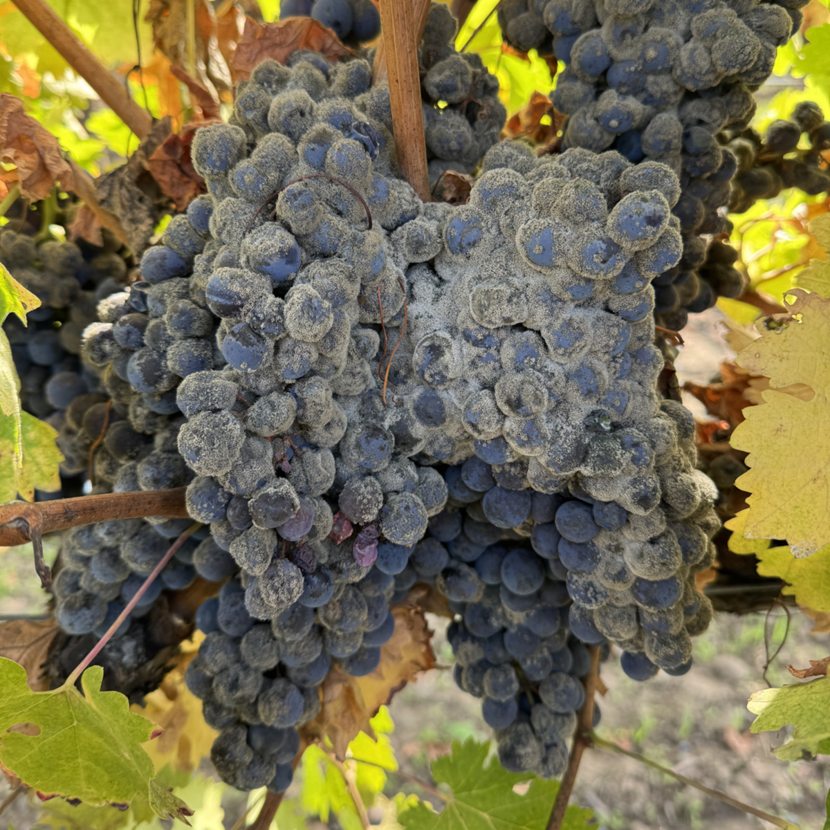 NGRA Board Chair Rich Schaefers of Nuveen Natural Capital snapped this photo in Napa showing what would’ve been beautiful clusters of Cabernet Sauvignon, infected with Botrytis.