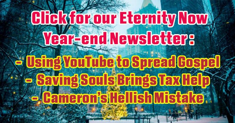 The ubiquitous YouTube is becoming a greater part of Eternity Now bringing Jesus to the globe. Even as other social media are weakening in efficiencies, YT is solid for EN's penny a person reached. We're also reaching many in Nigeria and other war-torn countries in Africa through the platform.
