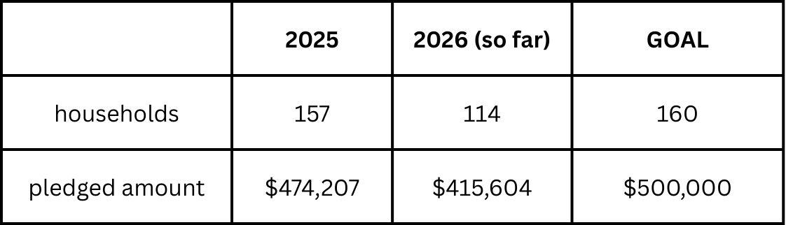 Thank you so much for your financial pledges for 2026. Your contributions make such a difference! If you haven't yet, please make your pledge at www.trinitycathedral.com/pledge.