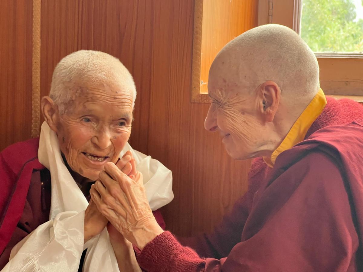 Zangmo at Tayul Gompa is now 92 and Yangzin at Chukta is 96. Zangmo will spend the winter at her family home in Stingiri as it is too difficult for her to live alone at the monastery. Zangmo has been a nun for 74 years and has known Jetsunma for over 50 years. Jetsunma stayed with Zangmo at Tayul before going to the cave. These nuns are all such inspirations.