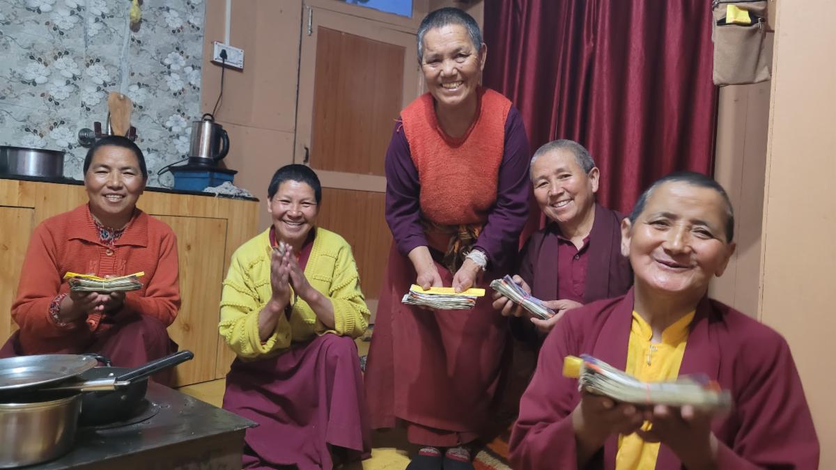 The Gebchak nuns are keeping well. They remain deeply committed to preserving their practice lineage long into the future, despite many changes and challenges around them. New residences and shrine rooms have been constructed, digital recordings are being archived so future nuns can properly learn the yogas, and older nuns are holding workshops to teach younger nuns liturgical arts.