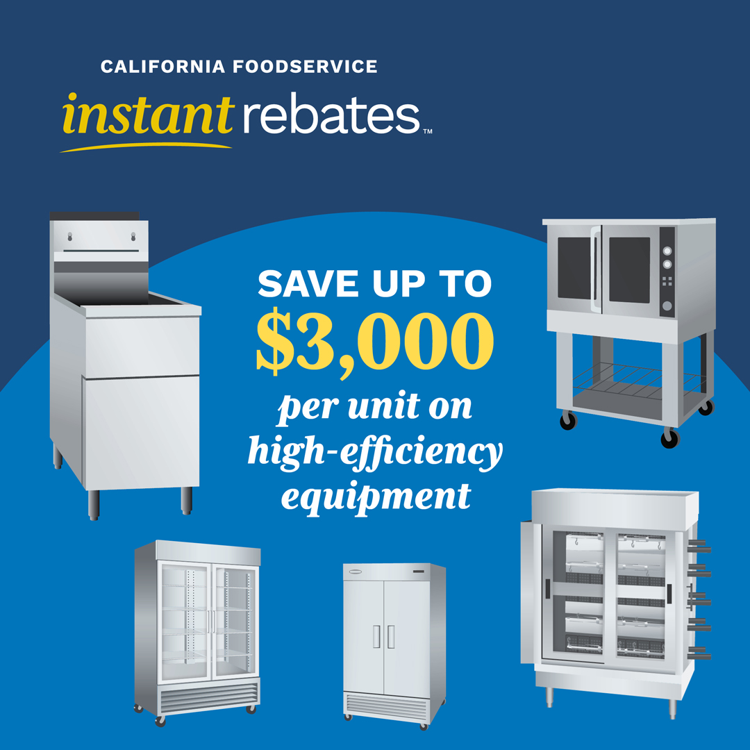 Learn more about the California Foodservice Instant Rebates Program by clicking the button below. Eligible for SoCalGas, PG&E, SCE, or SDG&E customers.