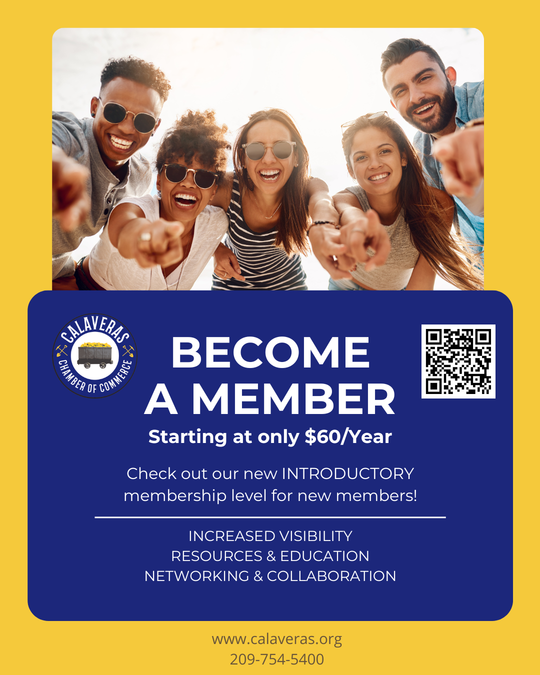 A Chamber membership is more than a listing - it's a connection to resources, visibility, and opportunity. Members gain access to marketing support, local advocacy, and a strong network of professionals who understand the value of doing business in Calaveras County. No matter your industry or size, joining the Chamber helps position your business for growth and success.