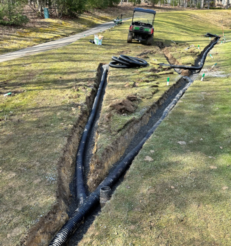 On Stonehaven, you will note that drainage work is being addressed. We apologize for the inconvenience, but this will help address the pooling water and improve your overall golf experience. I have included a photo below of the drainage work on Stonehaven.