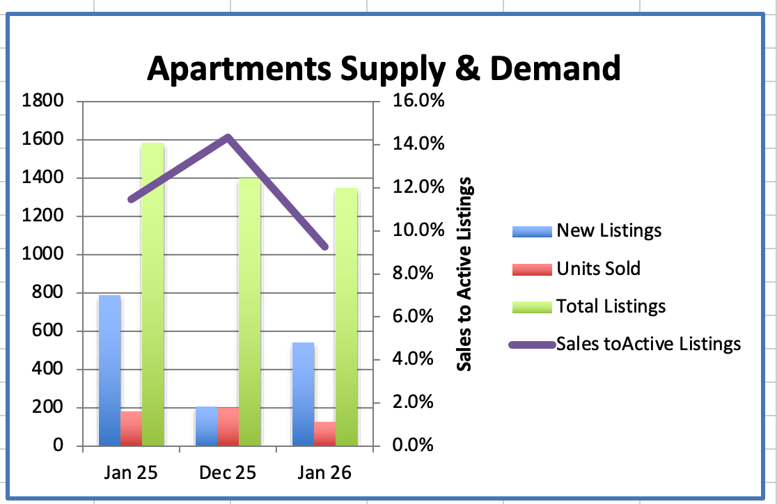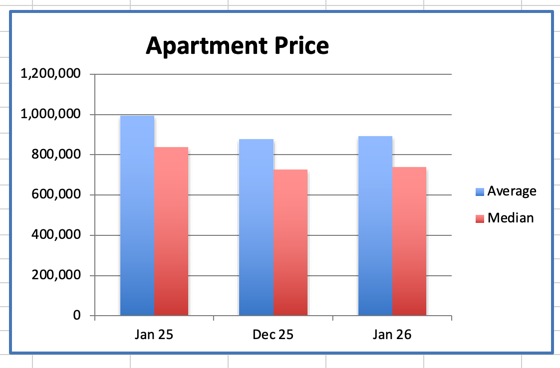 The Apartment average price was $891K, down 26% from $1.199M, the peak, in January 2018.
