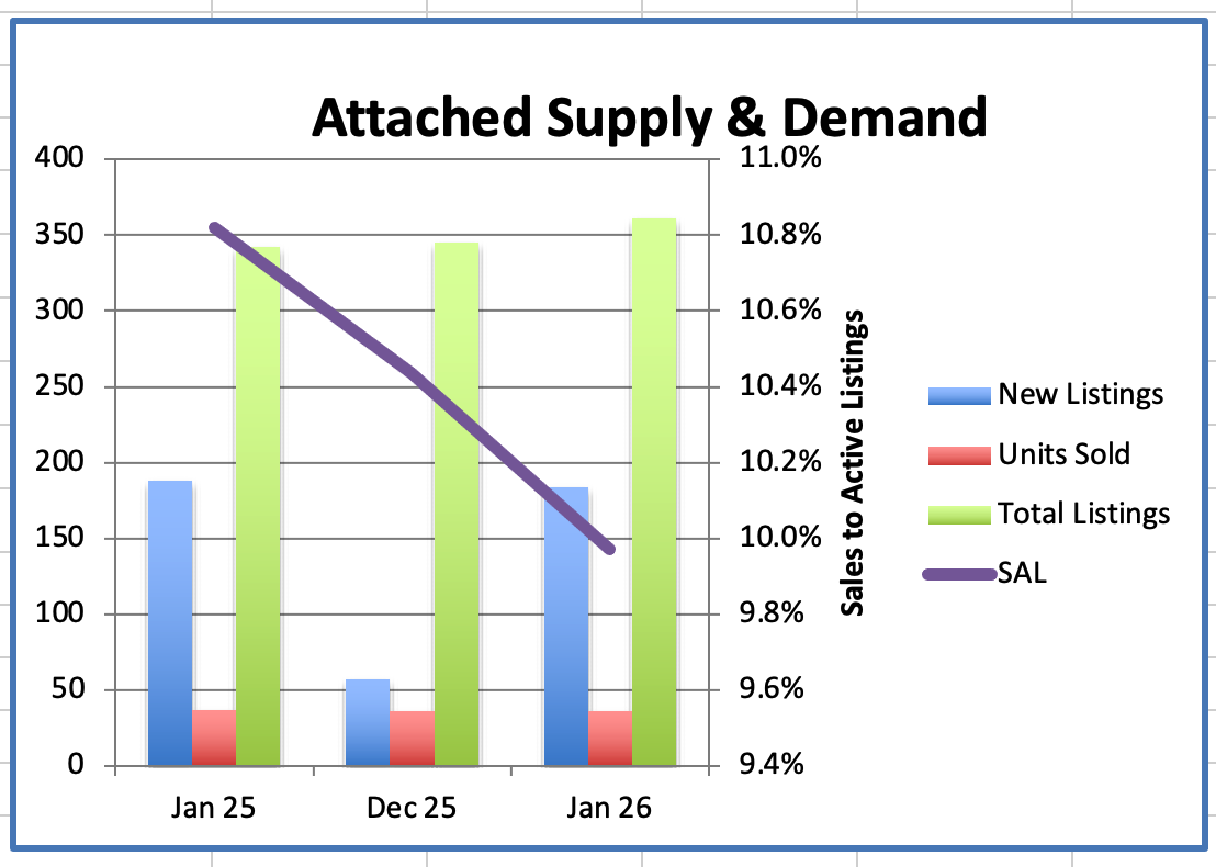 We had 36 Westside Attached home sales in January, unchanged from December.