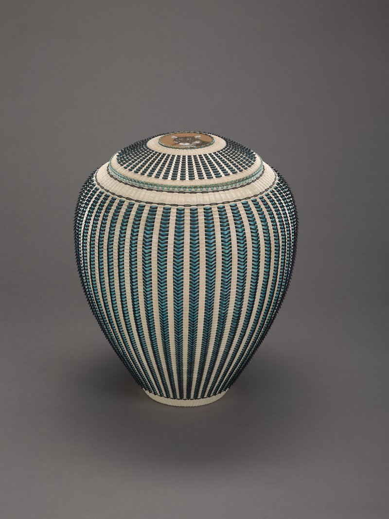 | | Jeremy Frey (Passamaquoddy, b. 1978), Watchful Spirit, 2022, Ash, porcupine quills, sweetgrass, and dye, 27 3/8" x 22 1/4" x 22 1/4". Denver Art Museum: Purchased with the Nancy Blomberg Acquisitions Fund for Native American Art, 2022.51A-B. © Jeremy Frey. Image courtesy Denver Art Museum | | The Bruce Museum presents Jeremy Frey: Woven, a show that represents the first major retrospective of seventh-generation Passamaquoddy basket maker and artist Jeremy Frey. Over two decades, Frey has used materials from the forests of Northeastern Maine to not only build "on [the] cultural foundations in his work" but also push the "creative limits of his medium, producing conceptually ambitious and meticulously crafted baskets." The show displays over 50 baskets made from "sweetgrass, cedar, spruce root, and porcupine quills, Woven also offers visitors an opportunity to reflect on the cultural agency and resilience embedded in Frey’s practice." The museum is open Tuesday to Sunday from 10 a.m. to 5 p.m. The Bruce Museum is located at 1 Museum Drive, Greenwich, CT. For more information, please visit here. | | Sponsored By: John S. Dykes, Bromfield Gallery, Art Complex Museum, Harvard Museums of Science and Culture, Galatea Fine Art, Boston University, Lexington Arts and Crafts Society, David Lloyd Brown, Guild of Boston Artists, and Artscope Online. | | |