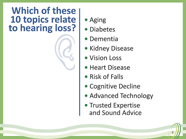 “Realizing educated residents are our best hearing health partners for life, we feature an all-inclusive Did You Know? introduction along with presentations targeting: