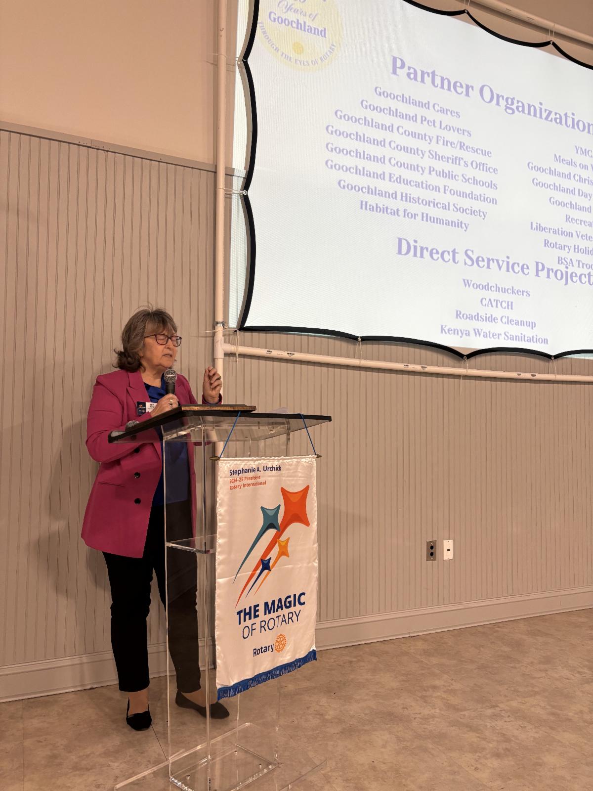 Our first speaker of the month was Andrea Ahonen. CEO of our great community partner, Goochland Cares. She did an excellent job updating us on the state of the union and the many opportunities we will continue to have partnering with them in 2025. Sally told me she has no worries, handing over the reins of GC to Andrea. Thanks Andrea.