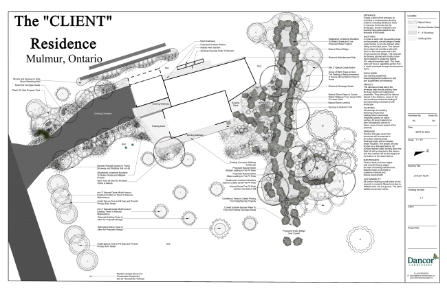 - Thoughtful placement of septic systems, heating sources, out buildings, pools, saunas, pathways, seating areas, and lighting enhances usability and safety.