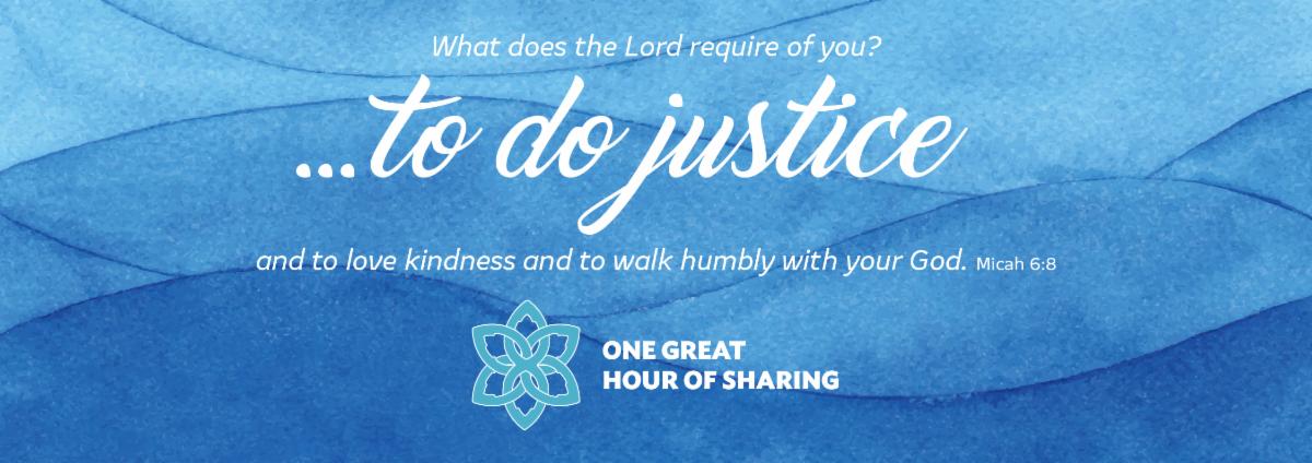 The One Great Hour of Sharing Offering answers the call to do justice. Through this offering, we are responding to Christ's call to ministries of compassion for the world's most vulnerable. Together, we answer the prophet Micah's call to do justice by working to address hunger, disaster, oppression, climate change and mistreatment of immigration refugees. When we participate in One Great Hour of Sharing, we create possibility for people forced to flee their homes in search of safety. We support recovery efforts when disasters devastate communities. We empower partners to build sustainable futures. We walk along side our siblings to work for more just immigration laws and processes. Our gifts show people they are not alone. Christians they don't know see them and care enough to respond. So, please consider making a generous donation to this Presbyterian offering, which will be dedicated on Easter Sunday. Thanks!