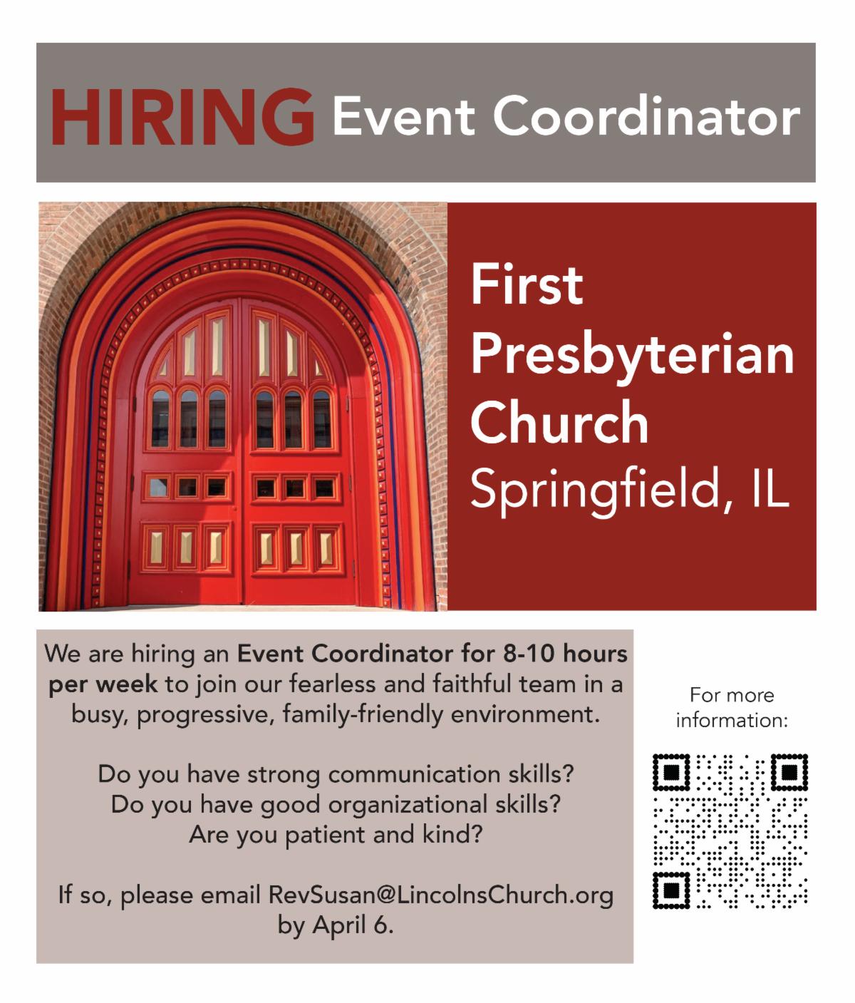 Please share this job listing with friends outside the congregation who might be a good fit for us. While we love our church members, to prevent a potential conflict of interest we are only receiving applications from non-members.
