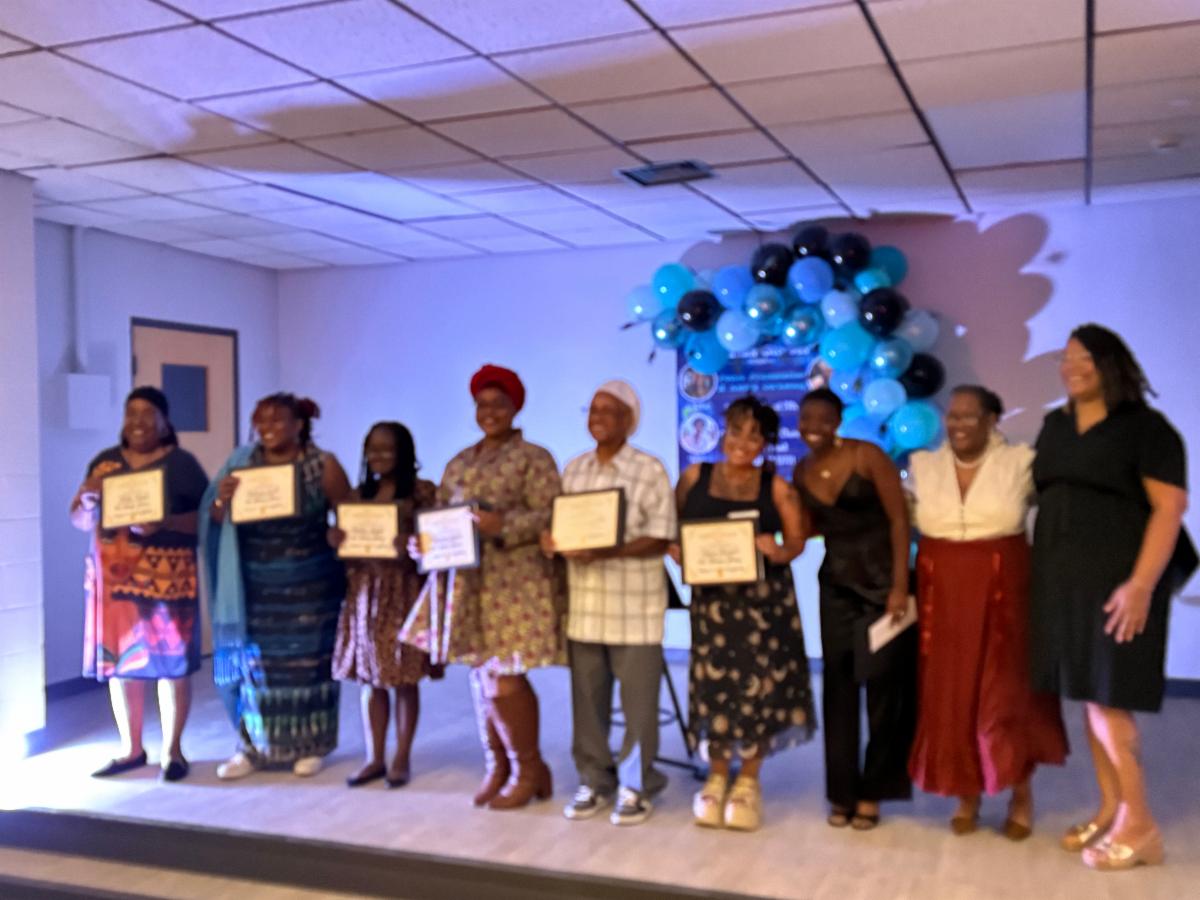 It was delightful to host the Stanza Stories Poetry Presentation and Awards Ceremony last night! Stanza Stories was a collaboration of the Garvey-Tubman Cultural Resource Center, Intricate Minds harm reduction, Springfield Area Arts Council, Unveiling Black Springfield, and First Presbyterian. This project was supported by Presbyterian Disaster Assistance funding for healing efforts following the death of Sonya Massey last summer. The poets had dinner in the Commons, then presented their original work in the basement. Folks used the elevator AND the lift! We set up for fifty and needed to bring down more chairs. What a blessing to share space with community partners!
