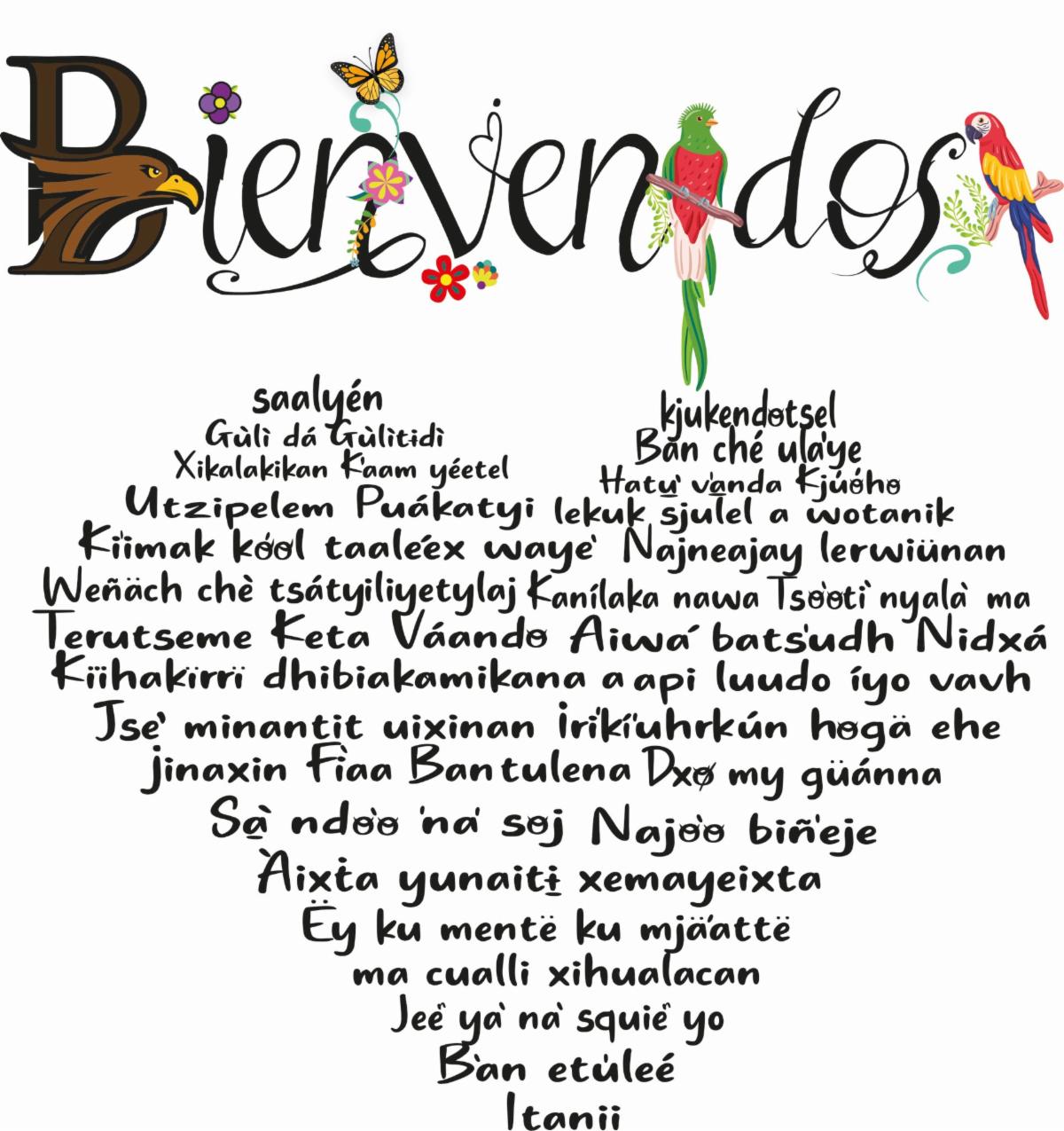 Welcome sign (33 languages) of the Migrant Resource Center designed