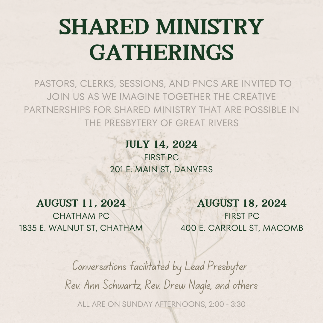 Lead Presbyter Ann Schwartz 309-683-6983 Email: aschwartz@greatriverspby.org