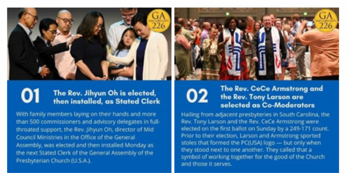 Lessons from Monday: A new Stated Clerk of the General Assembly was elected! The Rev. Jihyun Oh, the first woman of color, elected to serve as the Stated Clerk of the General Assembly, will begin her elected position on August 1st. The assembly rejoiced with cheers and tears of joy.