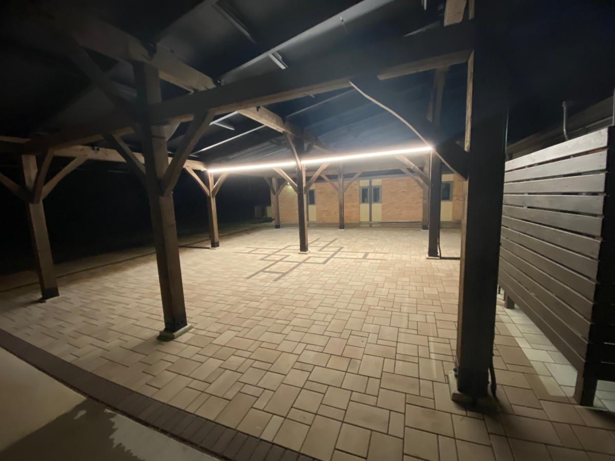 The solar pergola was connected to the grid on Monday. We are now fully producing solar electricity with our 129 solar panels! We are moving toward our Carbon Neutral and Net Zero Energy goal!! Huzzah!!